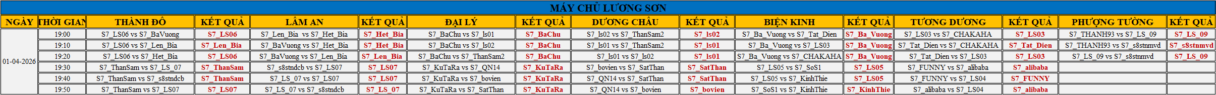 KẾT QUẢ VÒNG BẢNG LƯƠNG SƠN - ST4