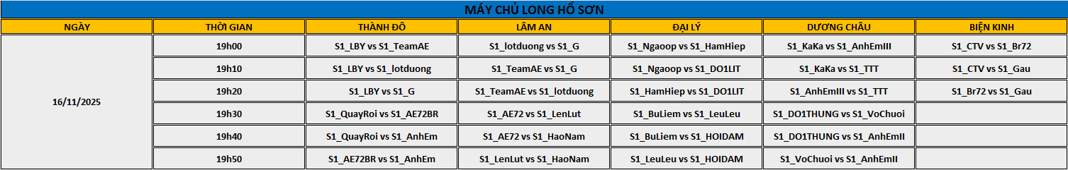 DANH SÁCH CHIA BẢNG MÁY CHỦ LONG HỔ SƠN