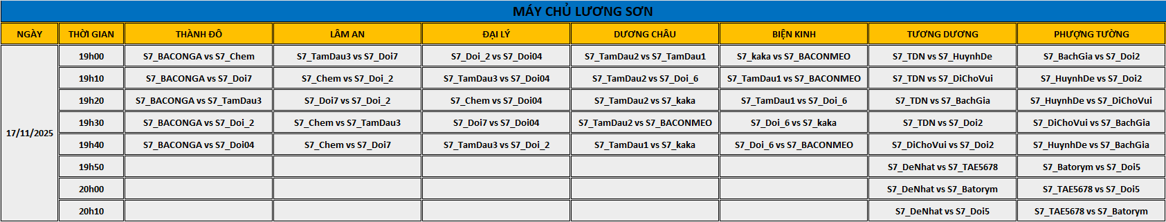 LỊCH THI ĐẤU VÒNG BẢNG - 17/11/2025 - LƯƠNG SƠN