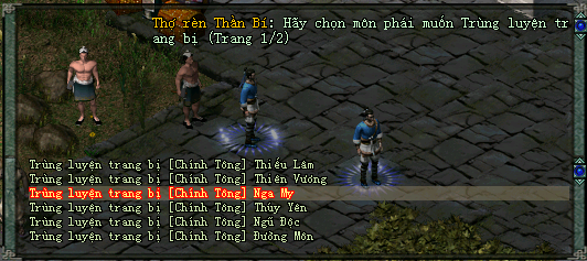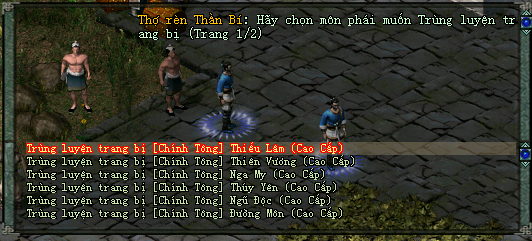 - B2: Chọn trang bị/ môn phái cần Trùng Luyện
